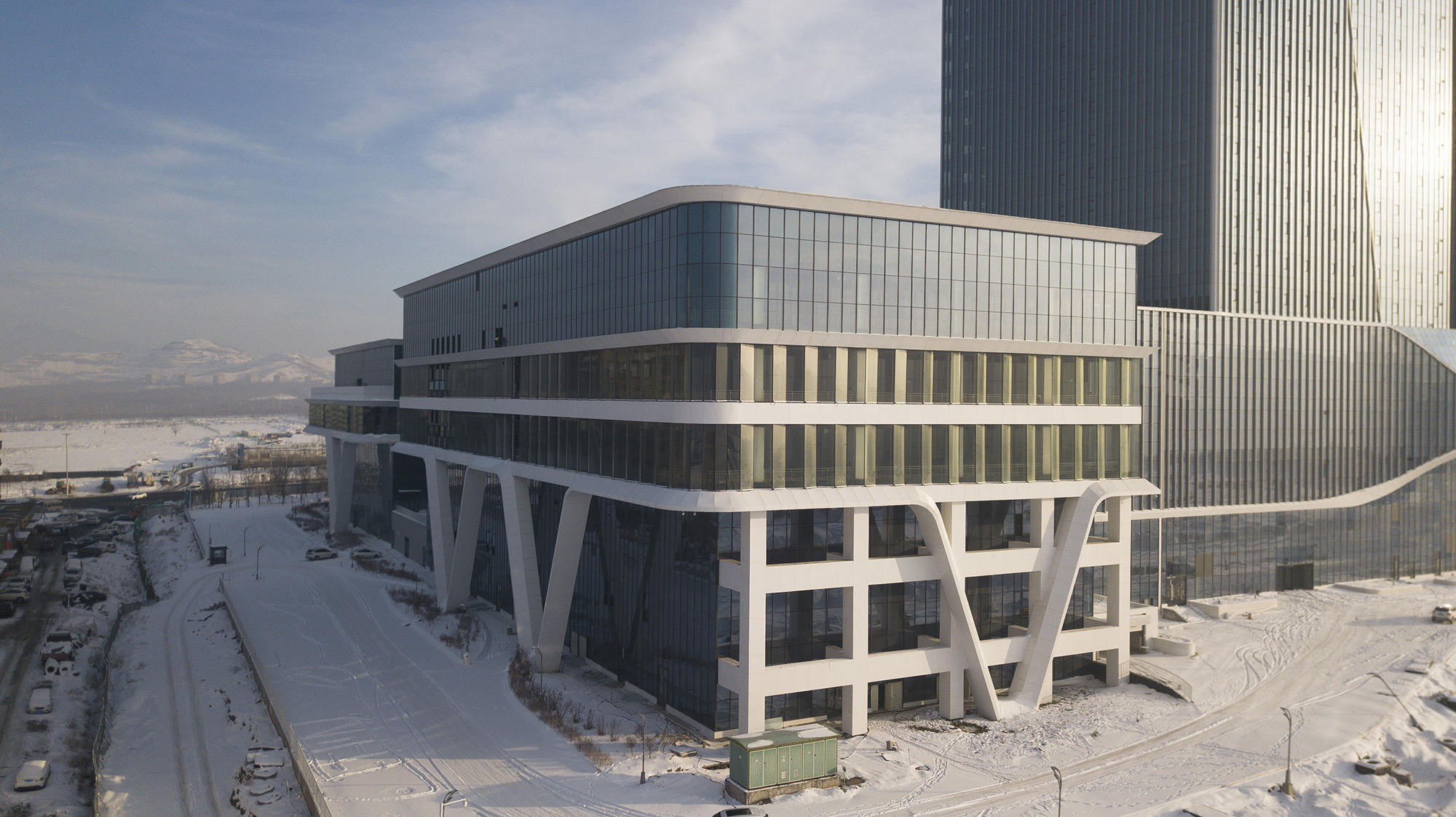 在新疆白鳥湖臨港產(chǎn)業(yè)園這片充滿希望的土地上,一座閃耀著現(xiàn)代建筑光芒的地標(biāo)性建筑正拔地而起——新疆白鳥湖臨港產(chǎn)業(yè)園綜合服務(wù)中心。而其幕墻工程,更是這座建筑的點睛之筆,散發(fā)著獨特魅力。