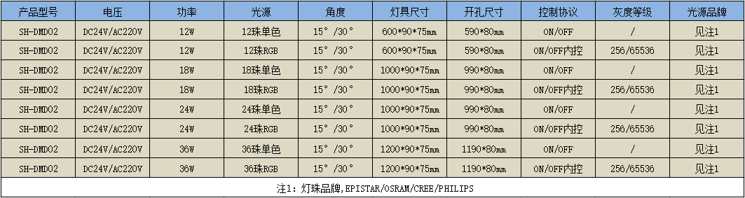 光源品牌: 晶元、歐司朗、科銳、飛利浦